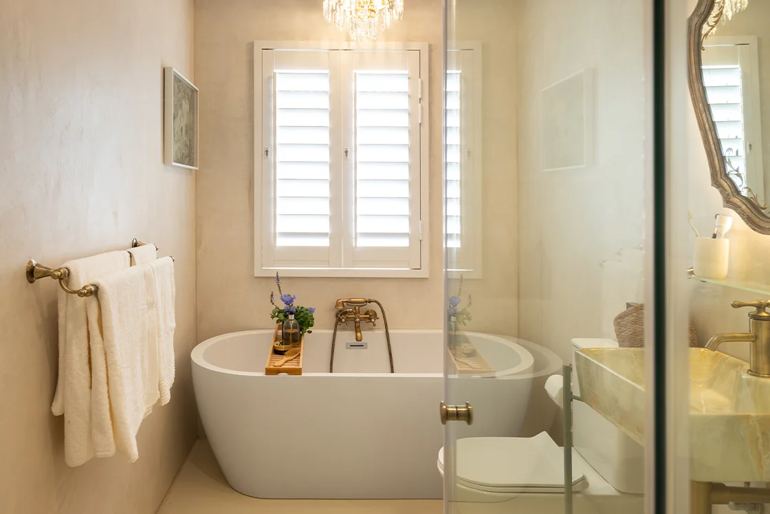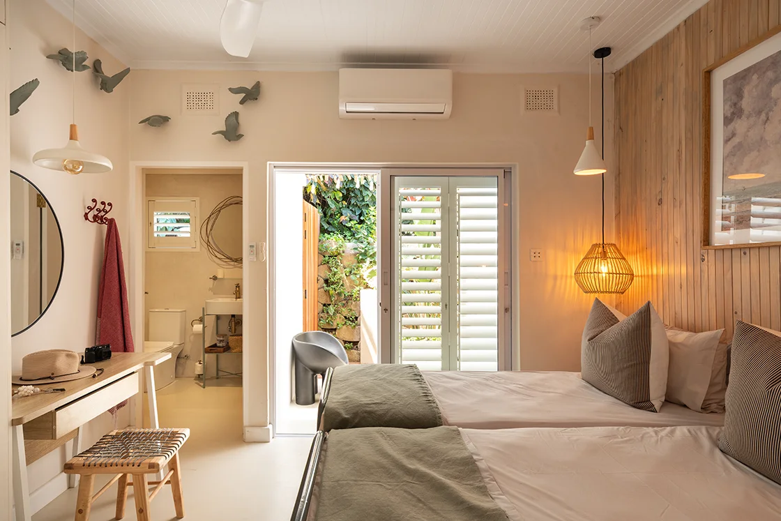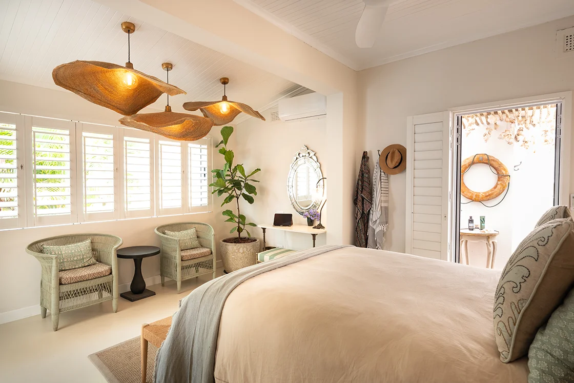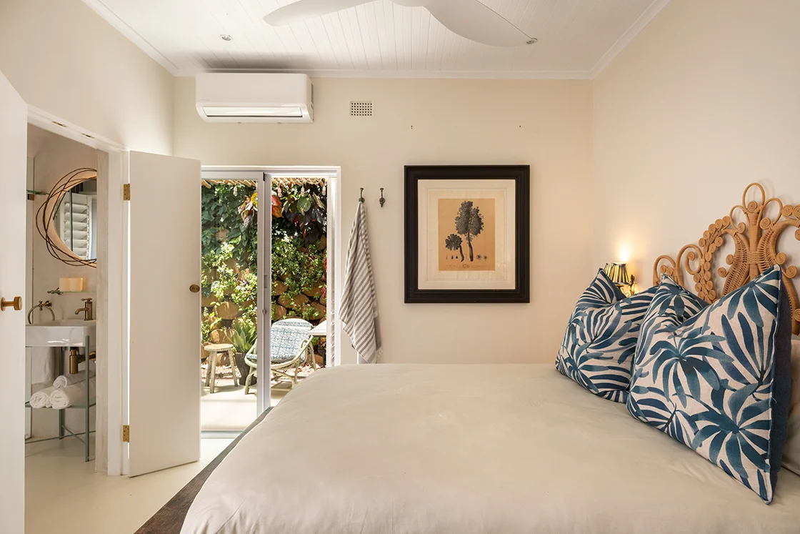 Just beyond, the one-bedroom cottage mirrors that same easy elegance – fully self-contained, with its own en-suite bathroom, outdoor shower and private outdoor sitting area, and a sense of quiet independence. Ideal for guests, longer stays, or a flexible dual-living setup.
