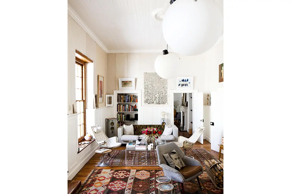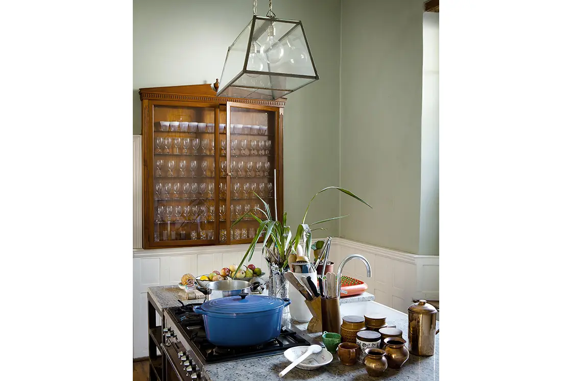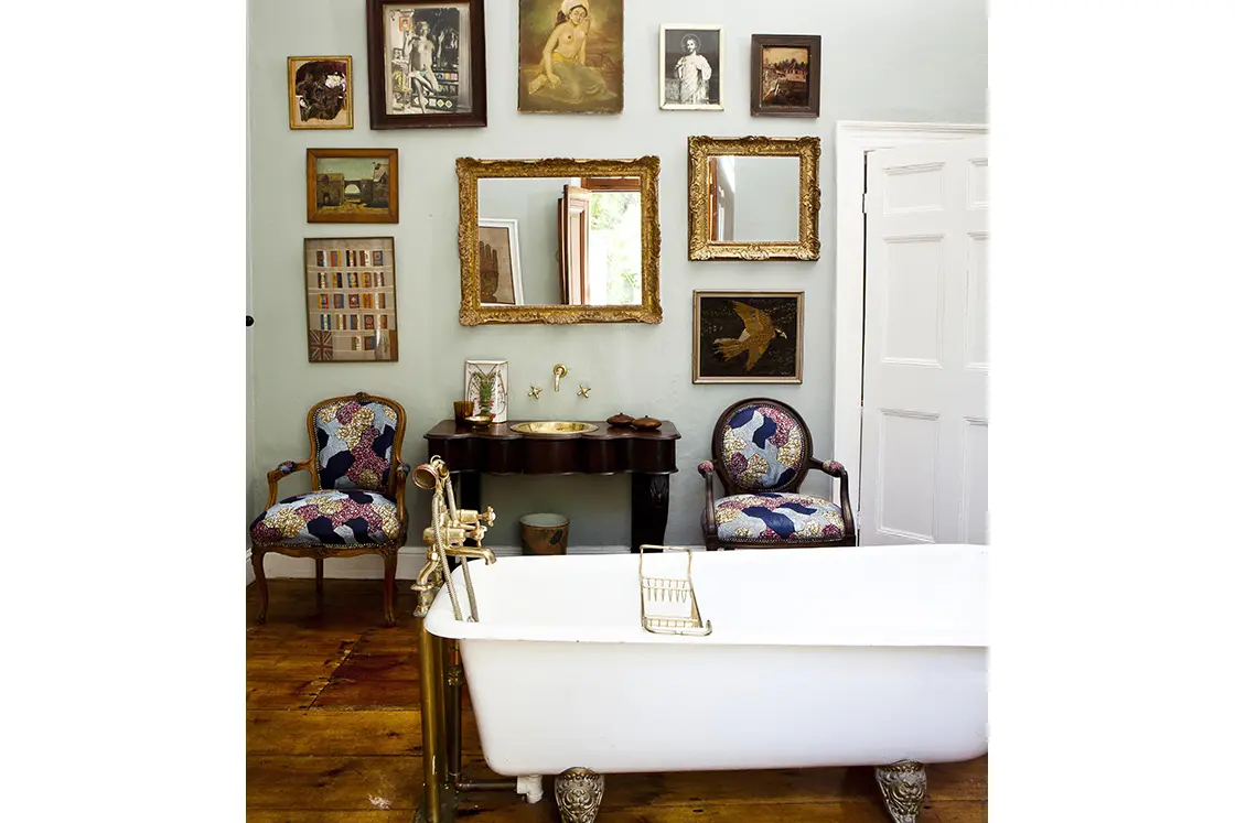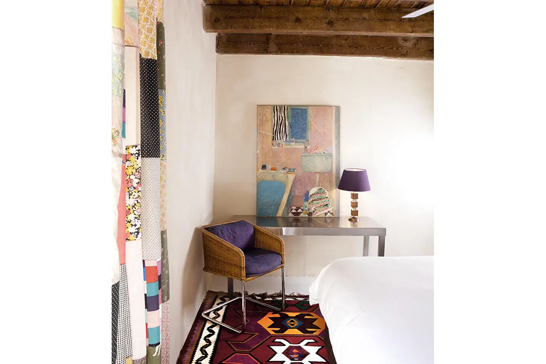 Couvaloup’s bones are old and beautiful – soaring ceilings, wide verandahs, wood-burning fireplaces, thick walls and wooden floors that tell their own tale. But the interiors are playful, eclectic and alive with stories. In the large lounge, an Edra sofa gifted by Joe Corré (son of Vivienne Westwood) sits under the gaze of Paco Rabanne’s silver artwork. A petit salon next door offers a quieter nook, filled with photographs, vintage finds and treasures from the owner’s travels.