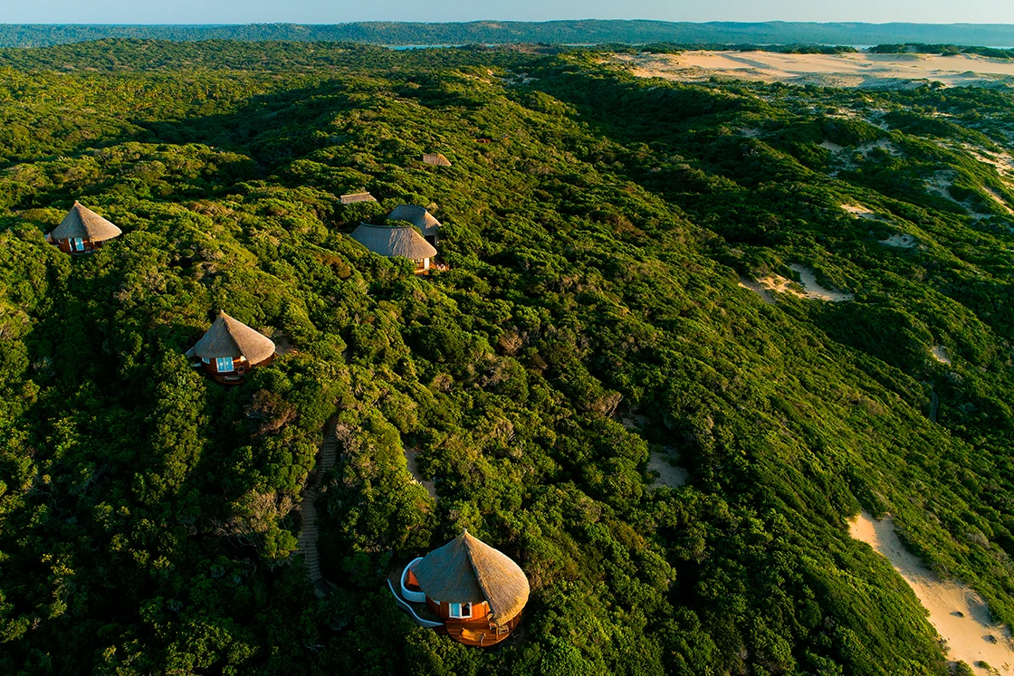 This intimate lodge is set on a crest of dunes, tucked into a verdant coastal forest and offers magnificent ocean views and absolute privacy. It’s positioned just 80km south of Inhambane in southern Mozambique. When it’s yours you will feel like you live on another planet, whilst in fact, you have a whole world at your feet.