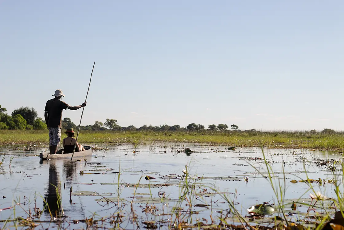 The Okavango Delta is a rarity: it’s an inland delta, filled by the rains in Angola, which drain towards the Kalahari Desert instead of into the sea. The result is an oasis for diverse wildlife, which flourishes in this dynamic wetland system. Old safari hands will know that the arrival of the flood waters in the Lower Delta – usually from April to July, and peaking in August – is a time of celebration. This is when Little Pan becomes a true island – perfect for exploring the river on a mokoro or on a scenic boat cruise.
