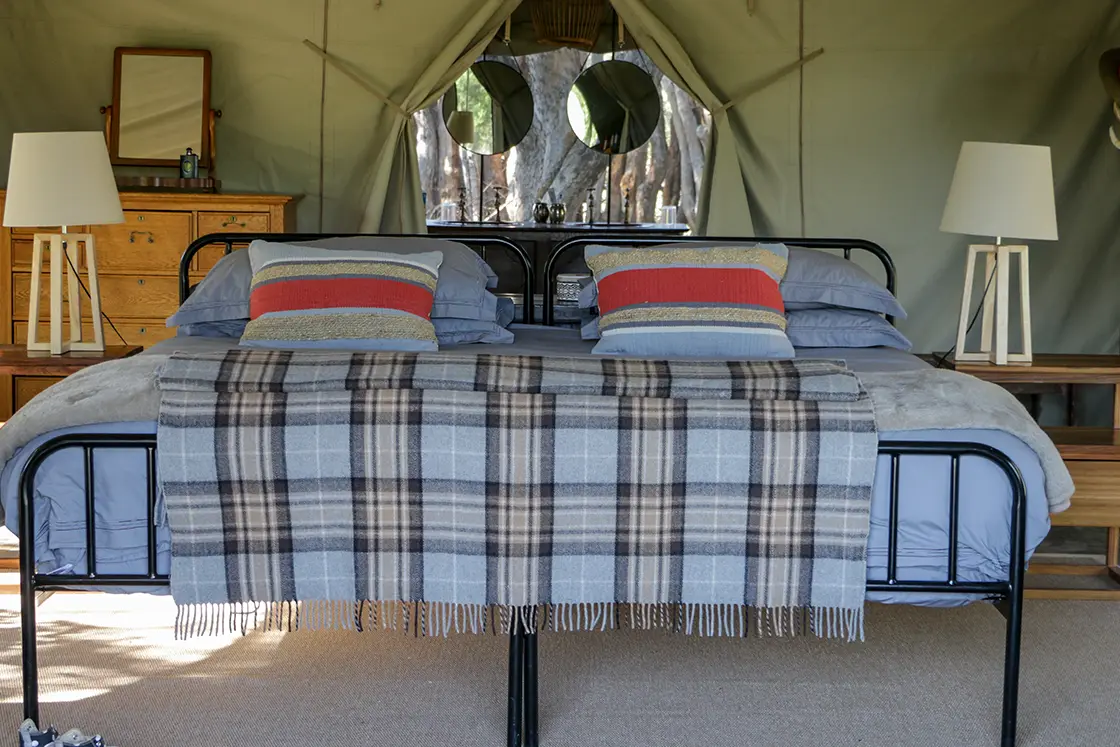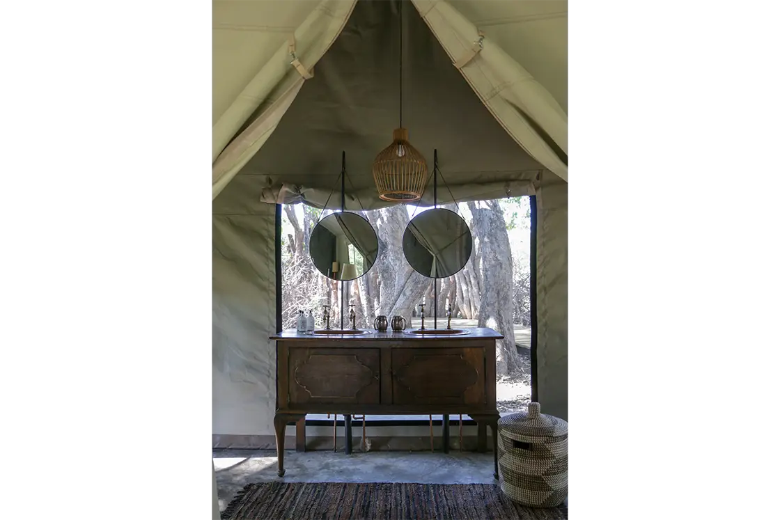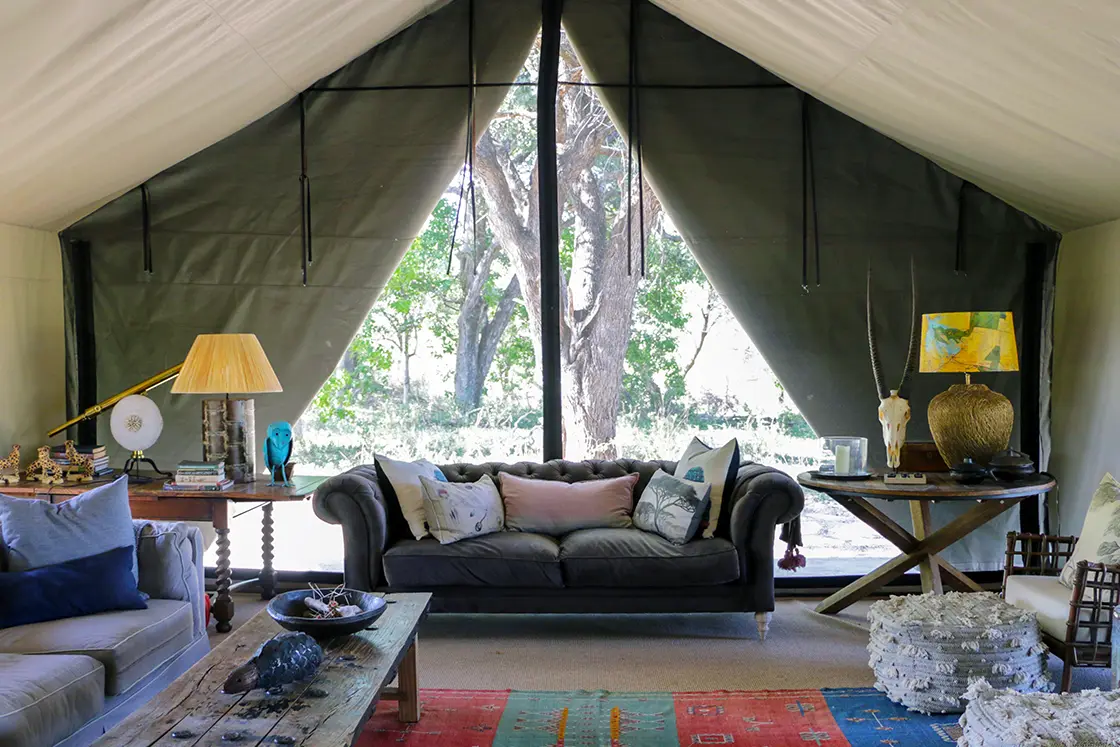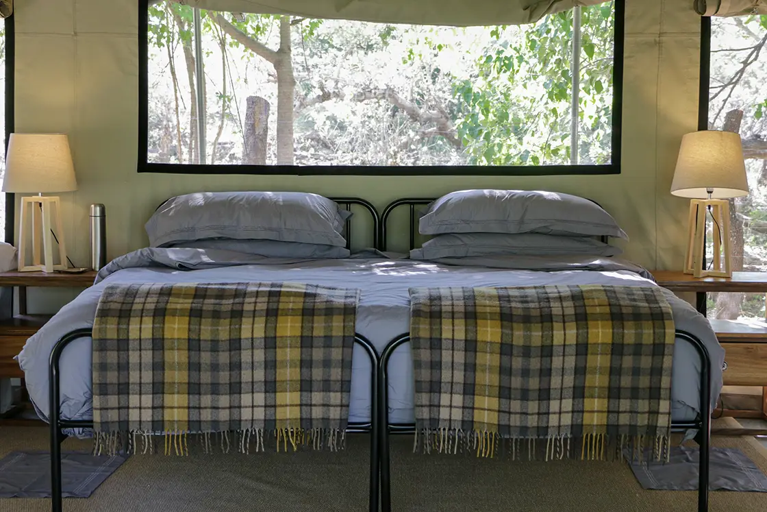 Four beautiful Meru-style tents, two family-friendly, are tucked among mature trees, offering an exclusive immersion in nature while remaining within easy reach of Maun’s safari hub.