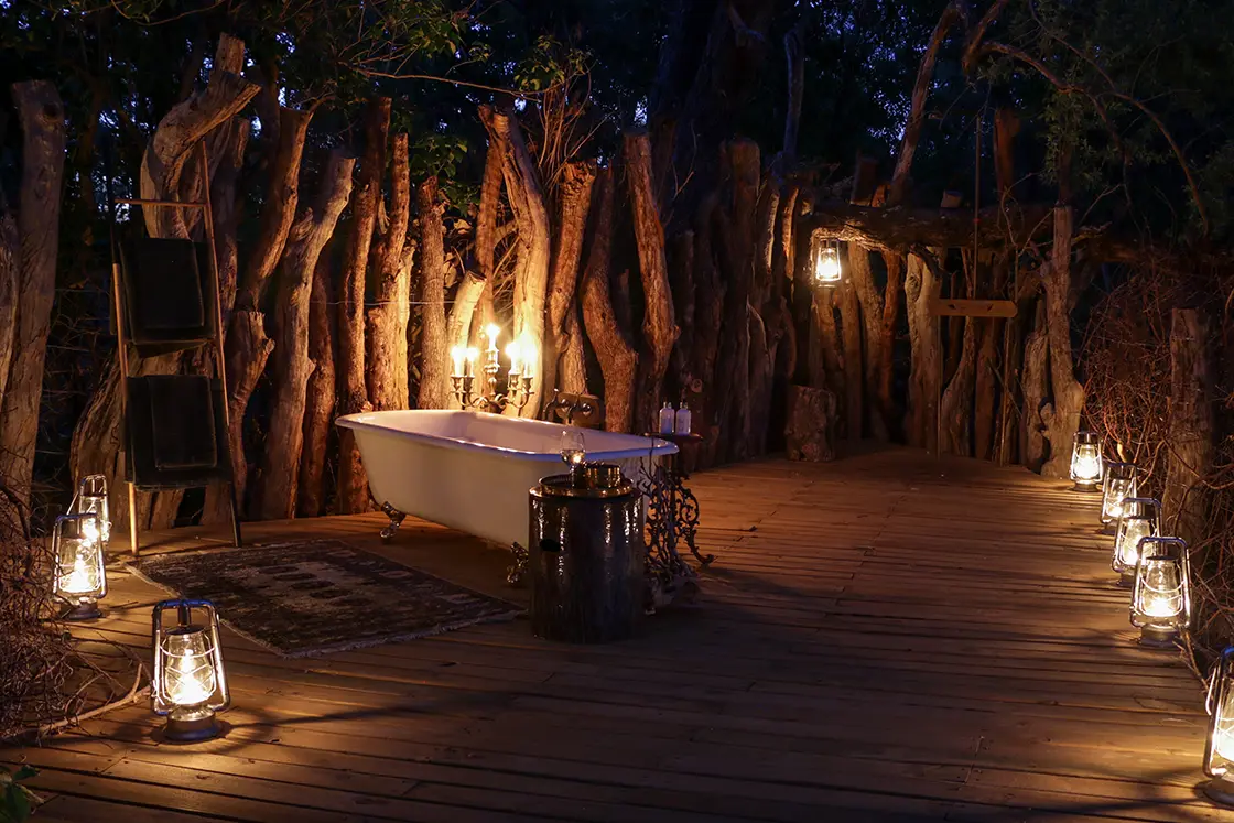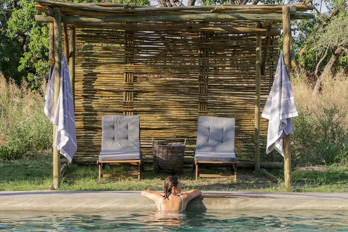 Everyday life at Little Pan unfolds at its own pace. Wake to the glorious dawn chorus of the myriad birds in the surrounding trees; shower outdoors to the sound of elephants breaking branches nearby; and breakfast to the sound of grunting hippos in the river. If you’re feeling energetic, head out on a bush walk or a horse-back safari… yet often the allure of quiet reflection wins. What could be better than lounging beside the pool – sloped to allow hippos to get out should any gatecrash – and watching the surrounding treetops come alive with birds? Here, the wild feels intimate, the rhythms of life gentle, and the connection to nature complete.