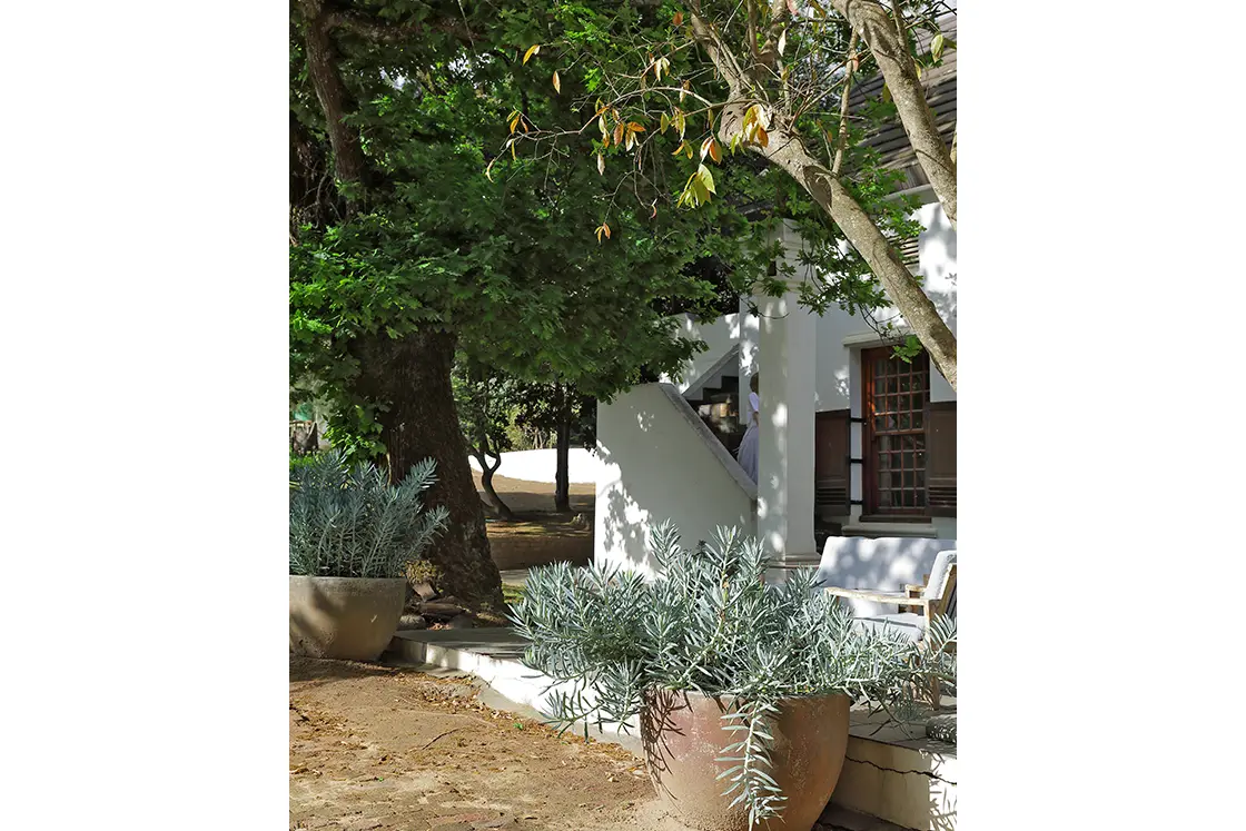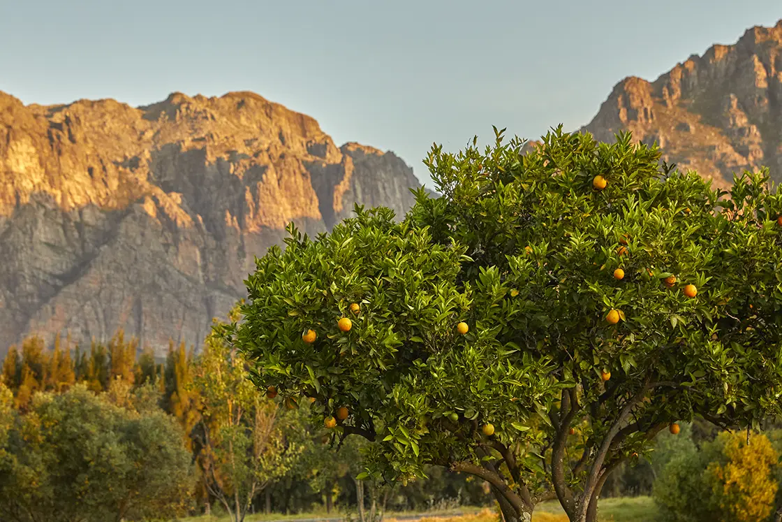 “It’s not just a property – it’s a way of living. I simply love being outdoors, so this farm has been a dream. I start the day on the stoep, watching the early sunlight glowing on the mountains. The garden is huge, filled with a bounty of fruit trees – lemons, figs, guava, limes, pomegranates, granadillas and olives. There’s nothing better than a long walk with the dogs, checking to see what’s ready to be harvested.