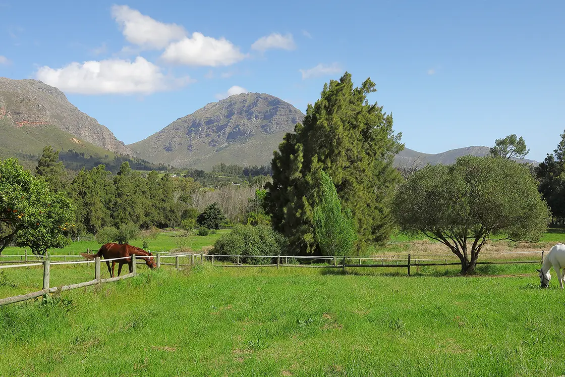 Tucked into the folds of the Paarl Valley, in the heart of the Cape Winelands, lies a lifestyle farm for sale that feels like it belongs to another time. At Waterkloof Equestrian Farm, a gentle rhythm of horse hooves, rustling oaks and shifting mountain light defines the day. This is a countryside horse estate for sale where life feels both expansive and deeply rooted, a wonderful find in this storied valley.