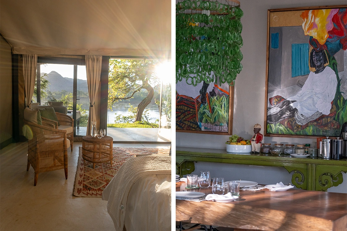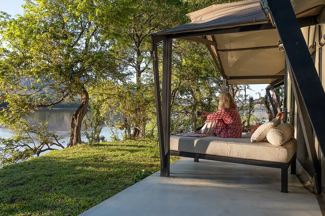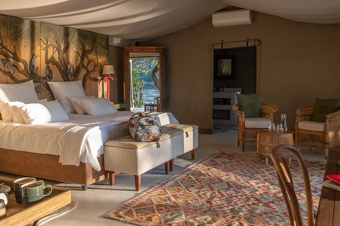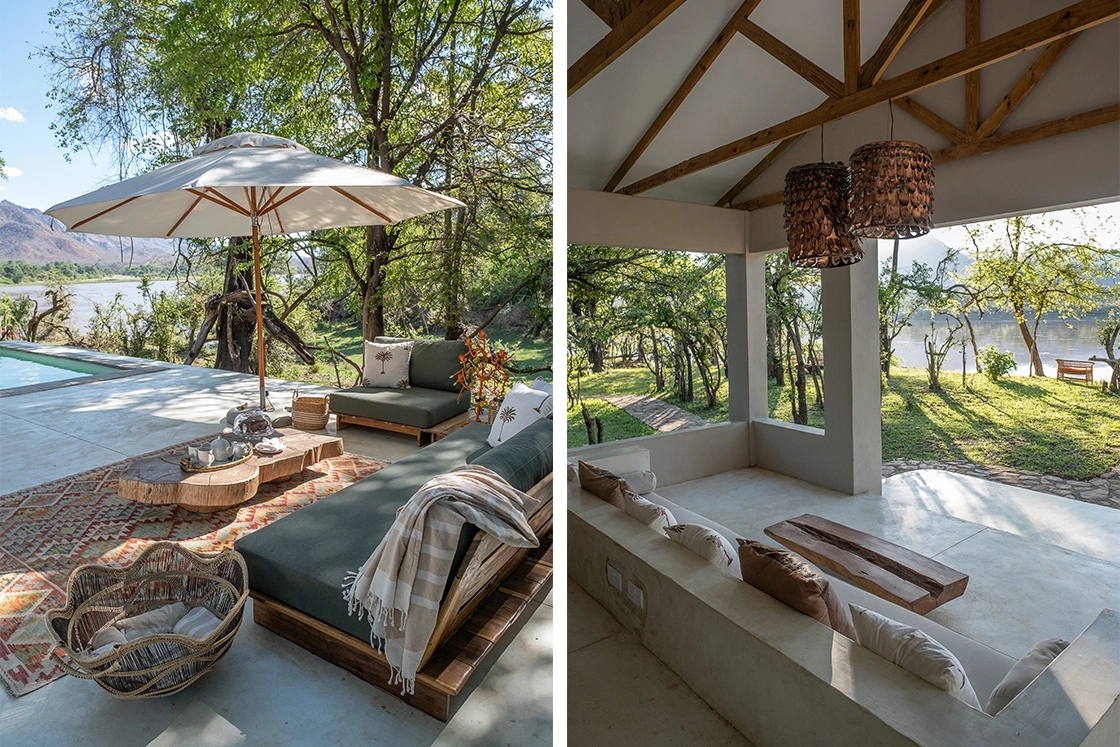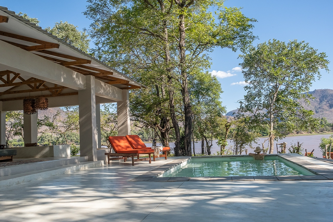 The result is an understated authenticity that feels completely in tune with its surroundings. Four spacious, air-conditioned tents feature en-suite bathrooms, open-air showers and verandahs overlooking the Zambezi and Sendeka rivers. The central bar and dining area flow out to a pool and sundeck with simply spectacular views of the twin rivers and the distant Uzha Mountains.