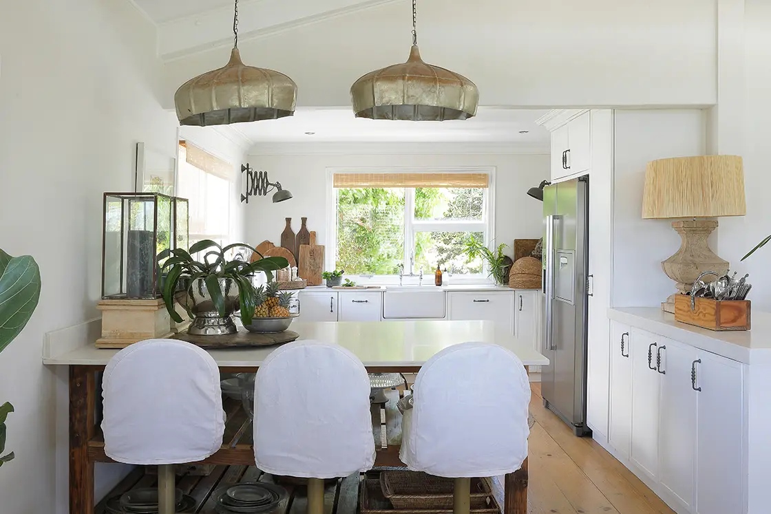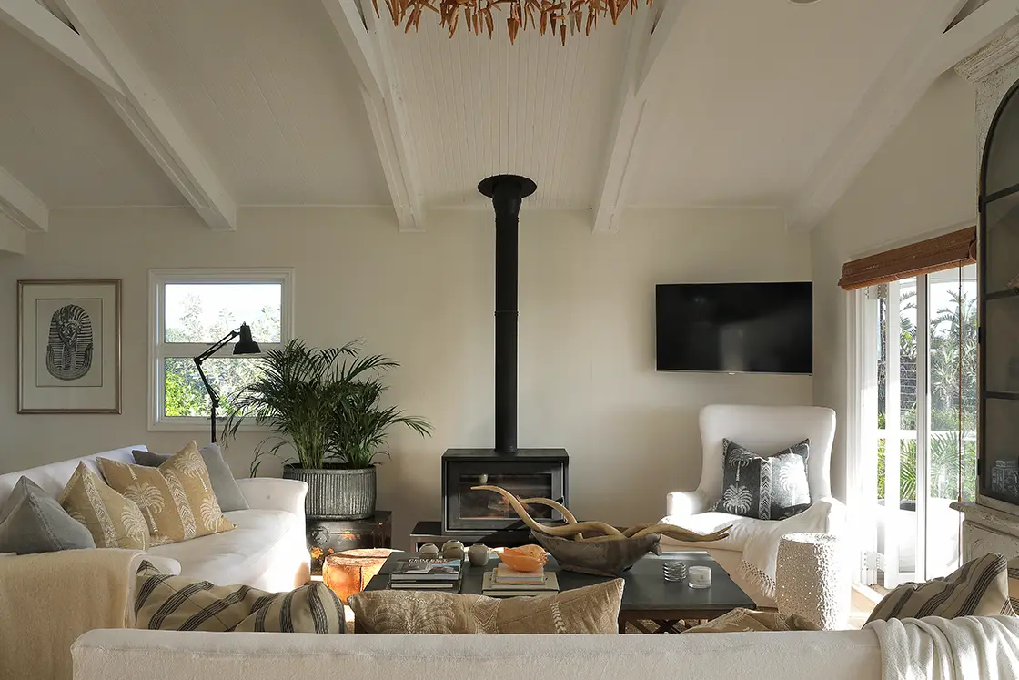 When the owners first saw the house, they knew they wanted to open it up – to let in the light, the breeze, the sea itself. The result is a home that feels abundant yet tranquil, airy yet cocooned. Sunlight filters through soft tones and pale timber, reflected in textures of linen, wicker and wood. Every space feels connected to the coast – a rhythm of openness and retreat, with sun beams for quiet reading and expansive decks for long, sea-view lunches.