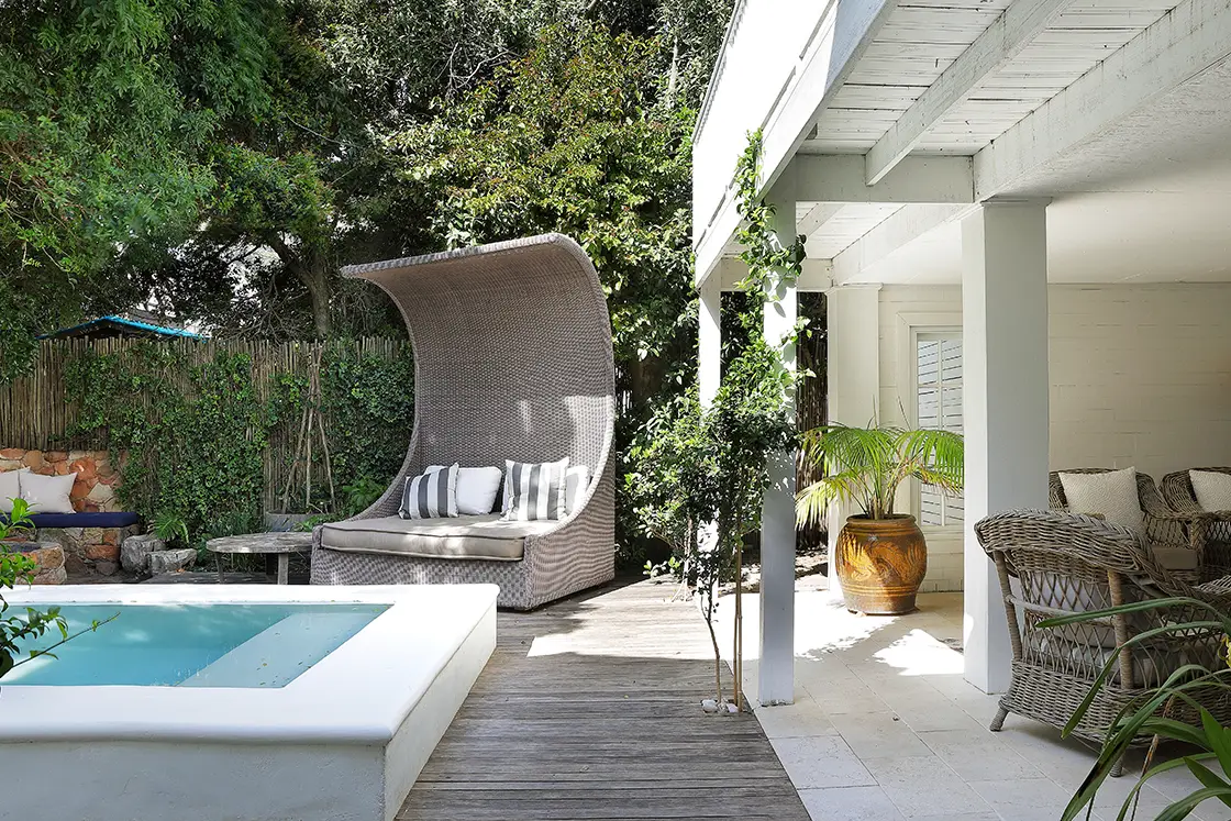 Choose your favourite, from the queen-sized bedroom with French doors opening to the garden, ideal for light and fresh sea air. Then there’s the double bedroom with pool views and a tranquil atmosphere – perfect for slow afternoons and post-swim naps. Or perhaps your first choice is the generous and relaxed guest suite with a private lounge area, and doors leading to a shaded terrace and garden.