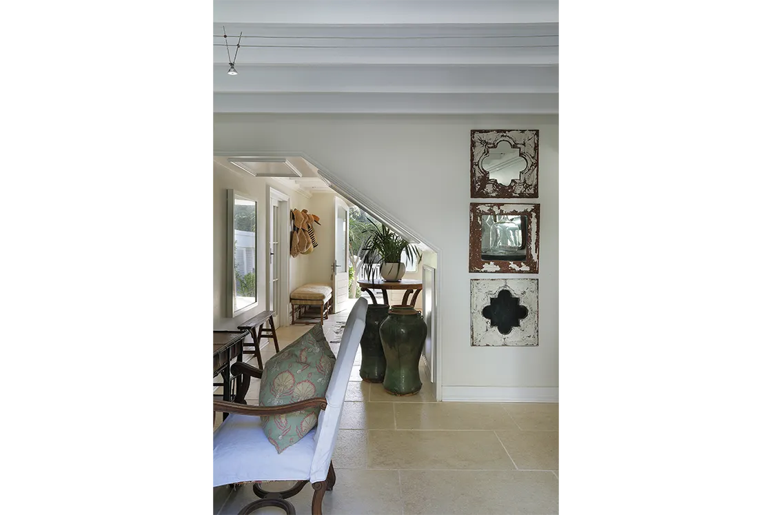 Styled in a relaxed, Coastal Hamptons palette, this Cape Town beach house for sale is the essence of casual elegance. Organic forms in the light fittings echo the sea – a nod to jellyfish, driftwood and giant clam shells. The design celebrates simplicity and texture: chalky whites, sea-glass greens, weathered wood, limestone and wide, open lines. It’s a beach house, yes – but one that holds its own in sophistication and ease.