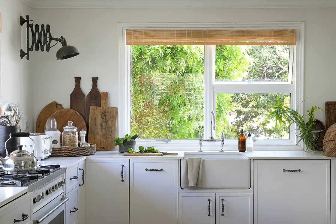 A scullery area off the open-plan kitchen keeps the business end of domestic life discreetly tucked away, while the kitchen’s breakfast counter is just the spot to share a bowl of yoghurt, muesli and fruit salad at the start of the day.